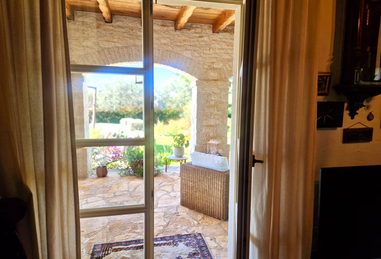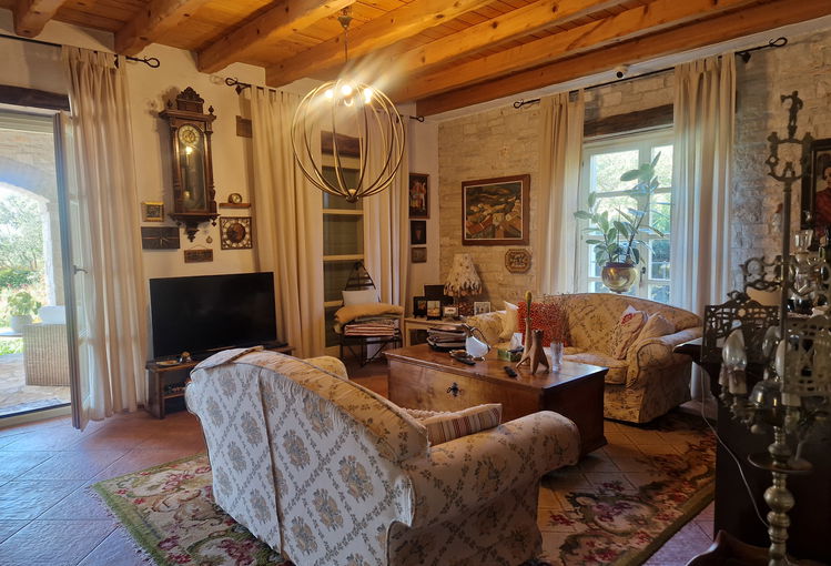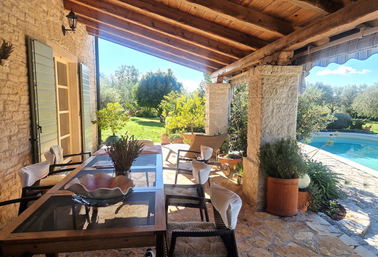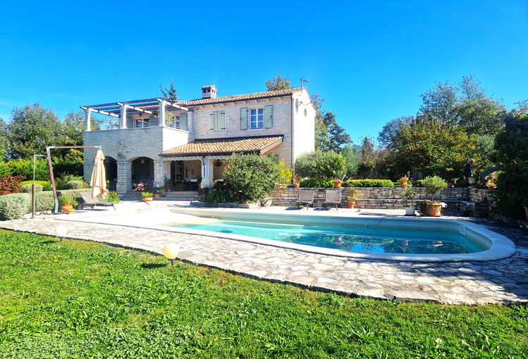 V mirnem, manjšem naselju v bližini Grožnjana je na prodaj je samostojna kamnita vila, opremljena in urejena v avtohtonem istrskem rustikalnem slogu, zgrajena leta 2007, Hiša se razprostira na 188 m2 bivalne površine ter stoji na prostorni parceli velikosti 1800 m2. Orientacija proti zahodu zagotavlja obilico naravne svetlobe skozi ves dan.