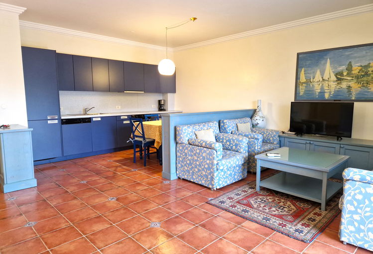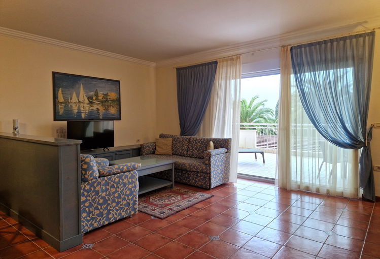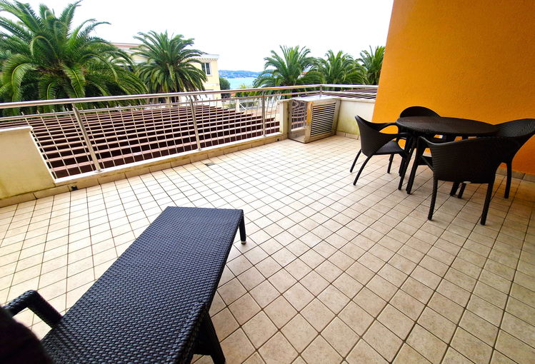Prostorska zasnova stanovanja zajema udobno spalnico z garderobo in kopalnico s kadjo. Prav tako ima spalnica francosko okno in pogled na palme in morje.Kuhinja z jedilnico in dnevnim prostorom z velikimi panoramskimi okni z izhodom na teraso meri kar 36,50 m2. Kuhinja je kakovostno opremljena z vgrajenimi aparati in pomivalnim strojem (vse Miele). Stanovanje je v celoti opremljeno, kar omogoča takojšnjo uporabo brez dodatnih vlaganj.